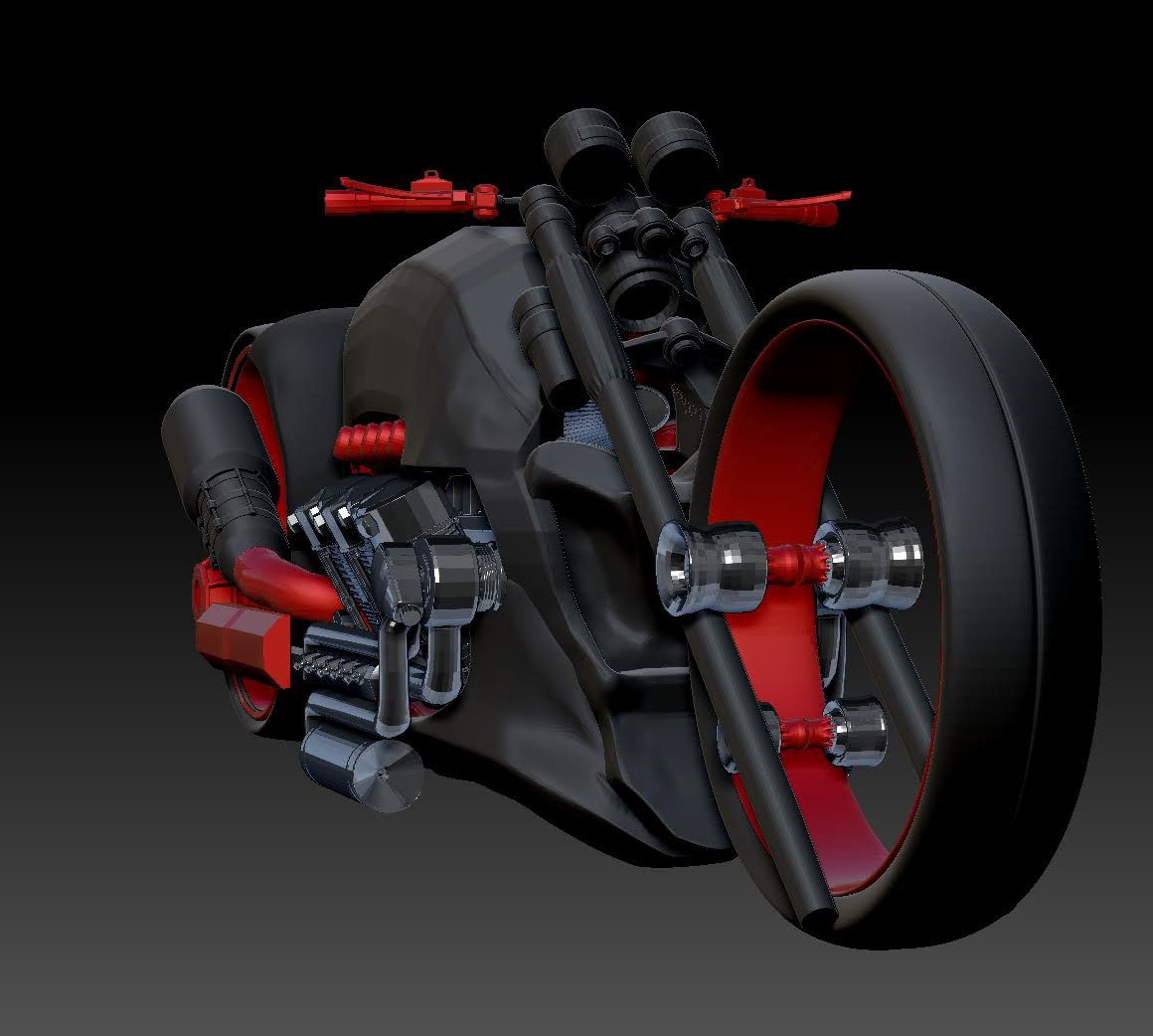Sci-fi motor cycle design Modeled in Maya and Zbrush